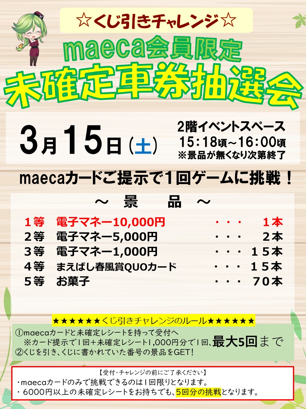 3月15日(土) maeca会員様限定!未確定車券抽選会を開催します!
