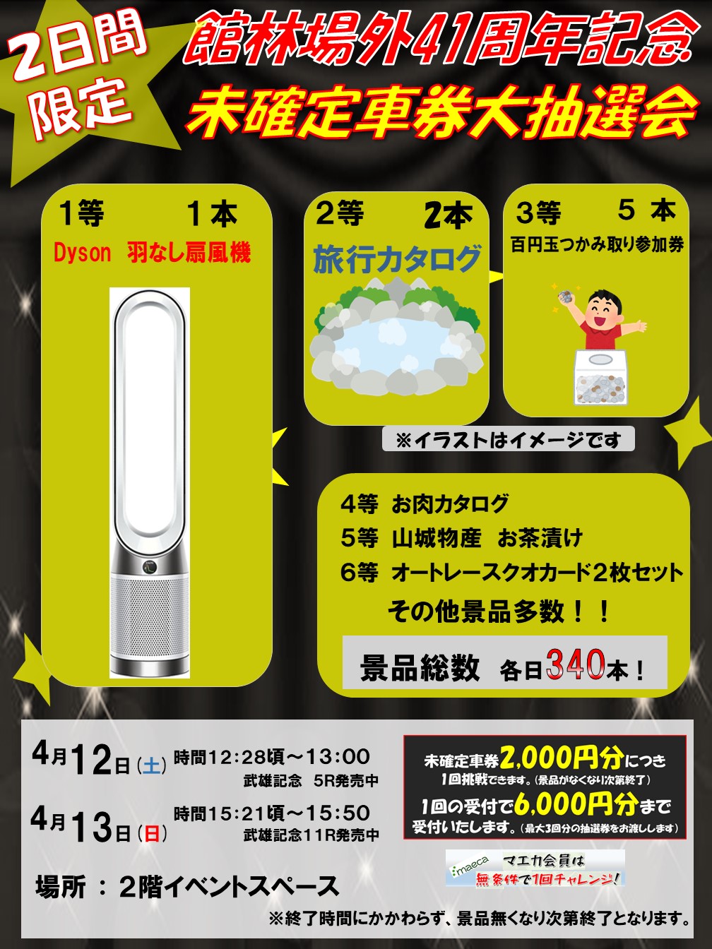 4月12日(土)・13(日) 未確定車券大抽選会を実施!