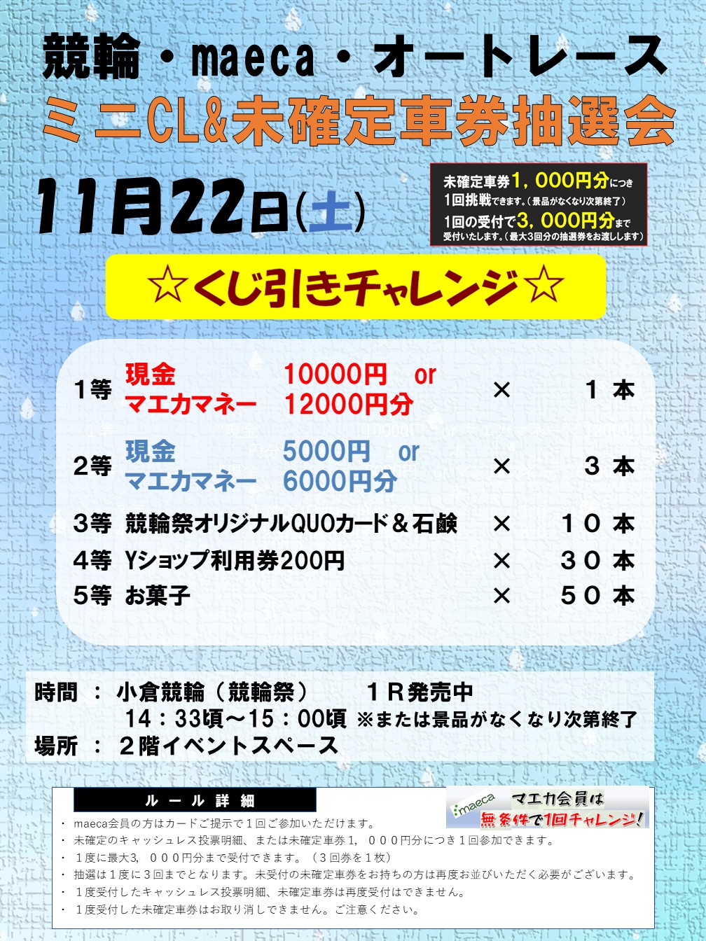 11月22日(土) CL&未確定車券抽選会を開催します!