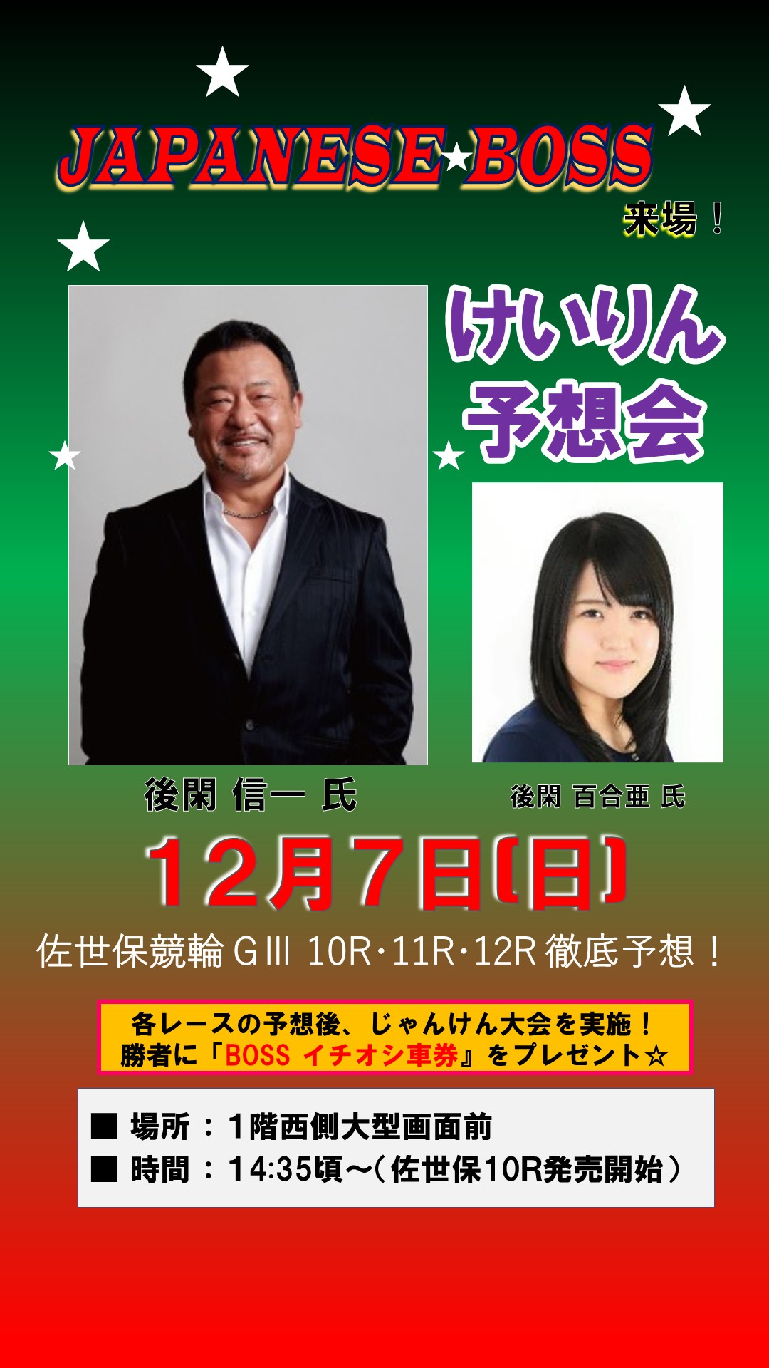 12月7日(日) けいりん予想会開催!後閑信一氏・後閑百合亜氏来場!