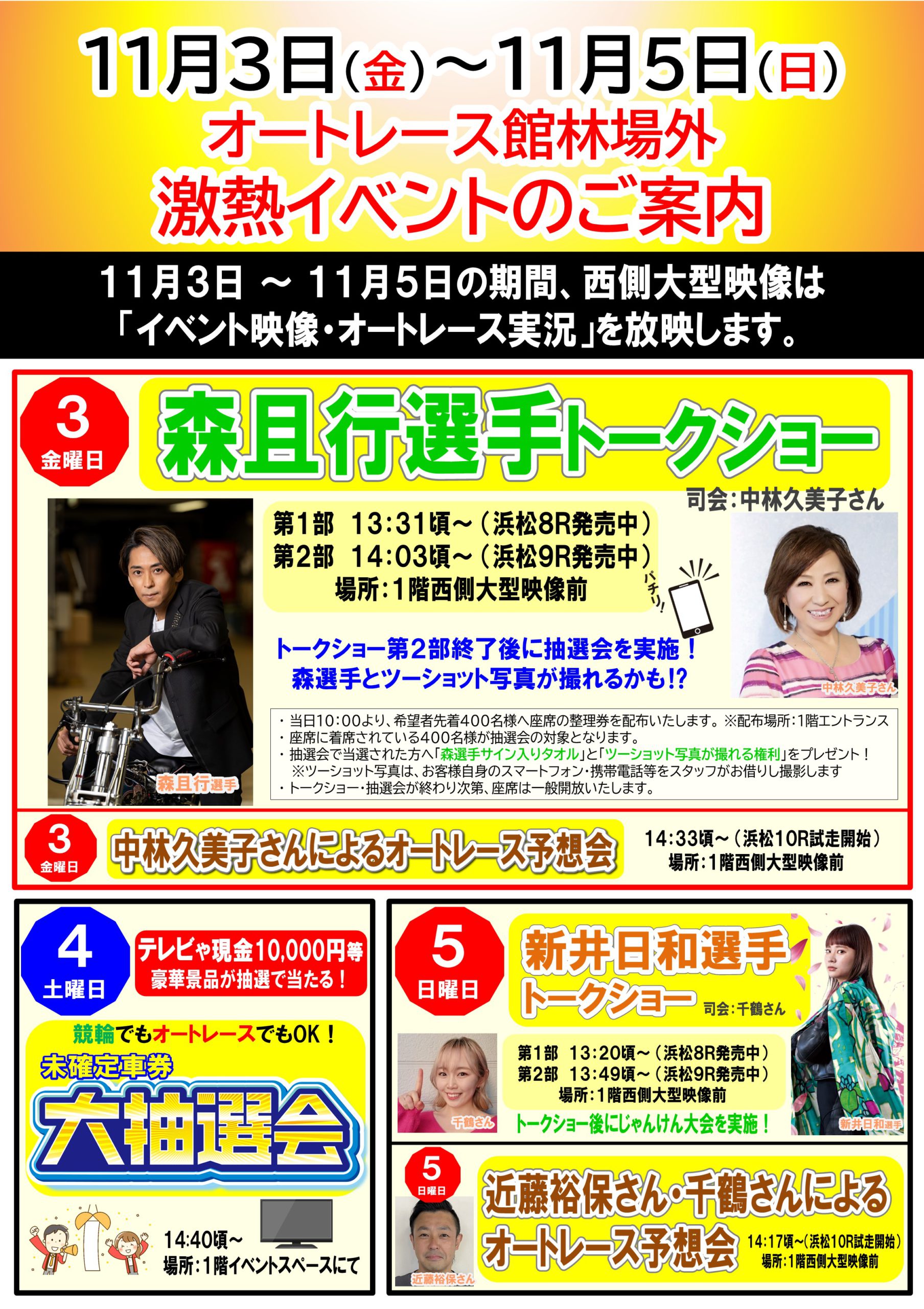11月3日(金) 森且行選手来場! 11月3日~5日 オートレースイベント開催