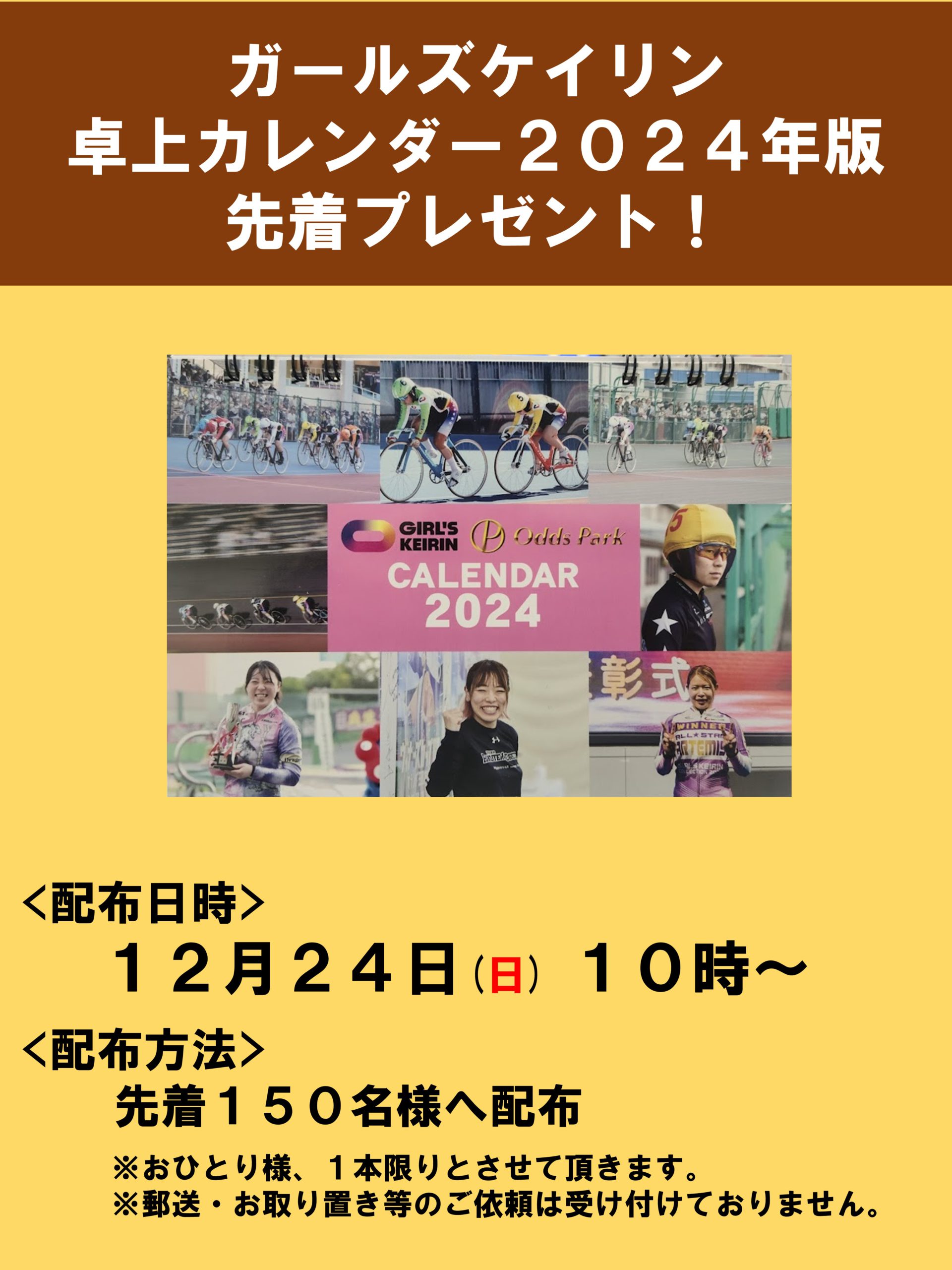 12月24日(日) 「ガールズケイリン卓上カレンダー2024年版」プレゼント!