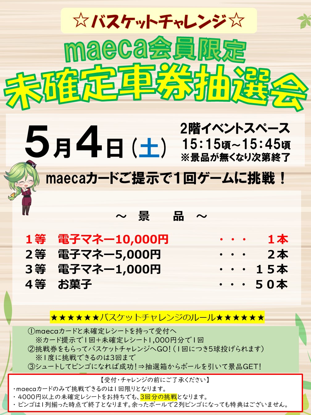 5月4日(土) maeca会員様限定!未確定車券抽選会を実施!