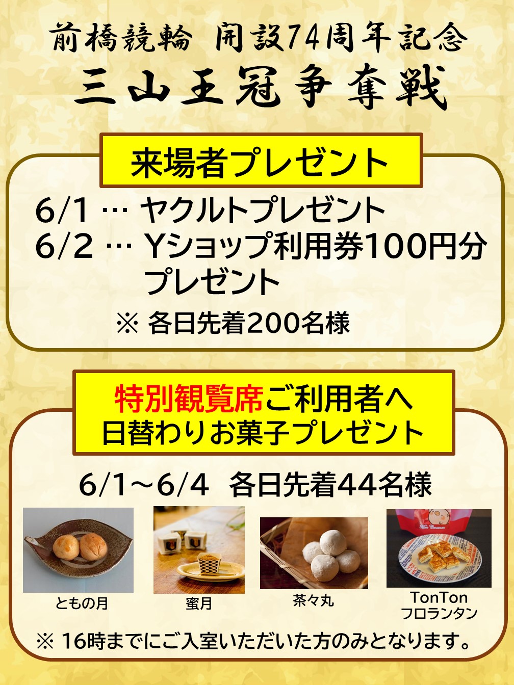 6月1日(土)~6月4日(火)の期間中特別観覧席ご利用者へ