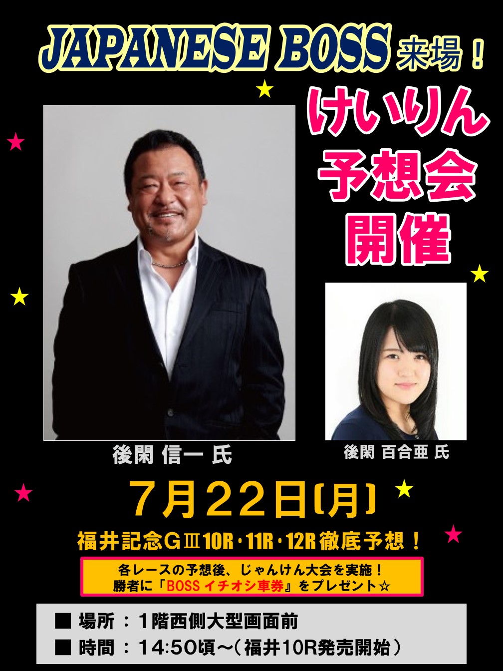 7月22日(月) けいりん予想会開催!後閑信一氏・後閑百合亜氏来場!