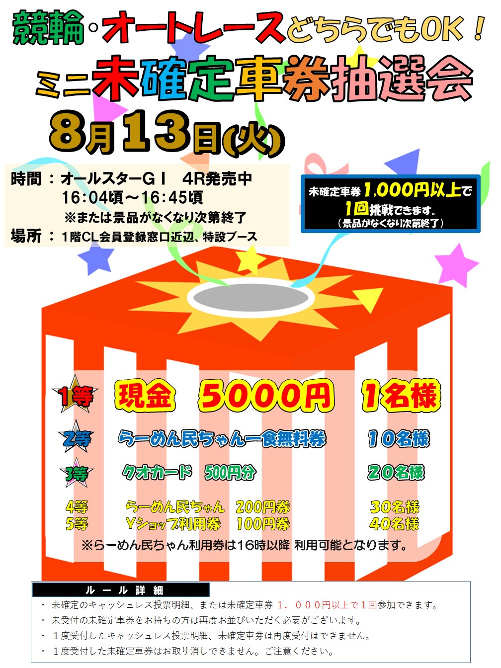8月13日(火) ミニ未確定車券抽選会を実施!