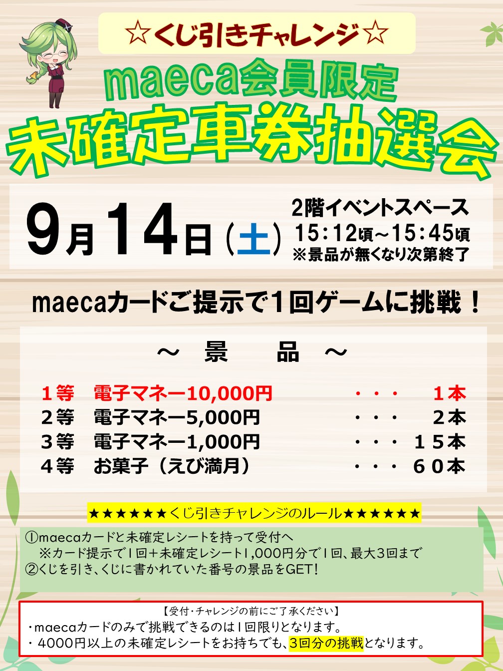 9月14日(土)maeca会員限定!未確定車券抽選会を実施!