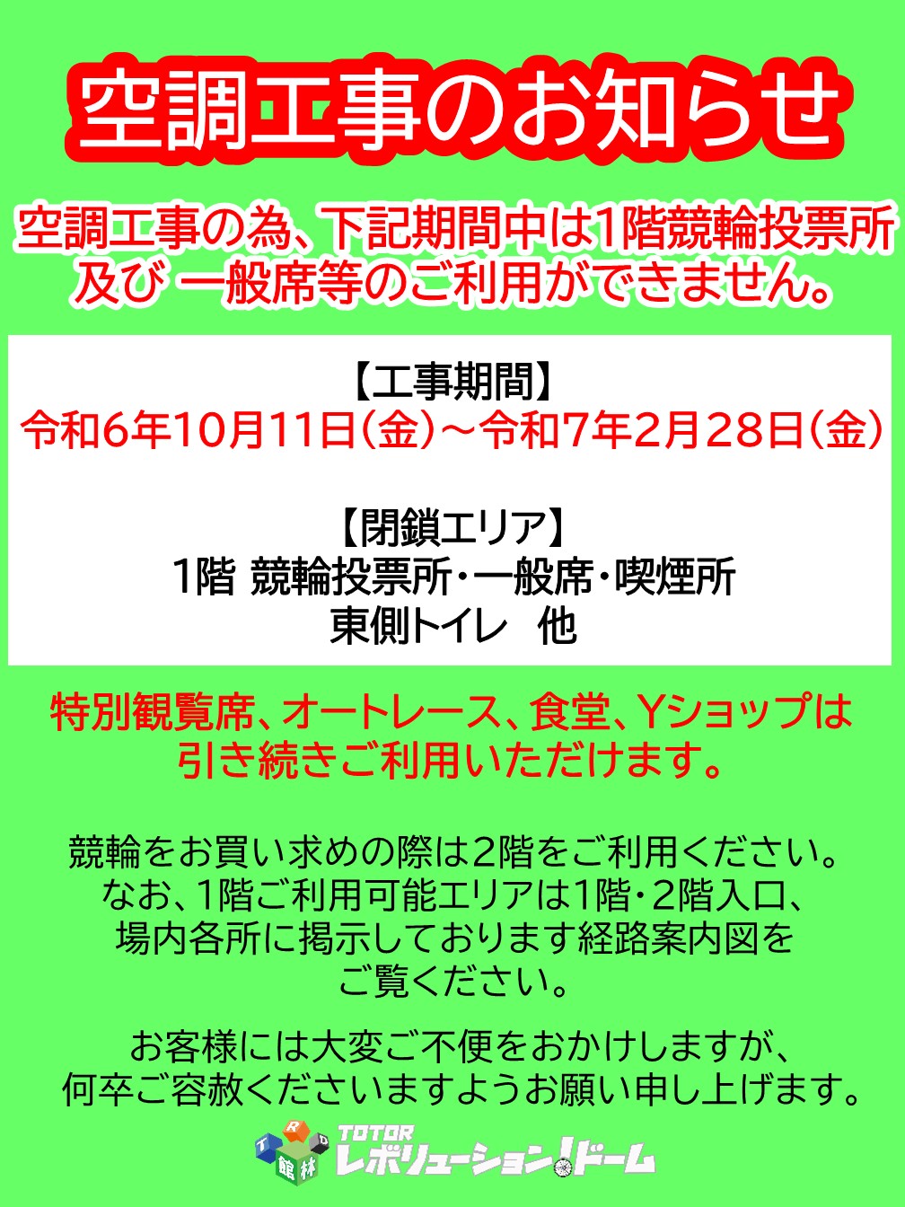 特観席・オートレースコーナー・Yショップ・民ちゃんらーめんは通常通りご利用いただけます。