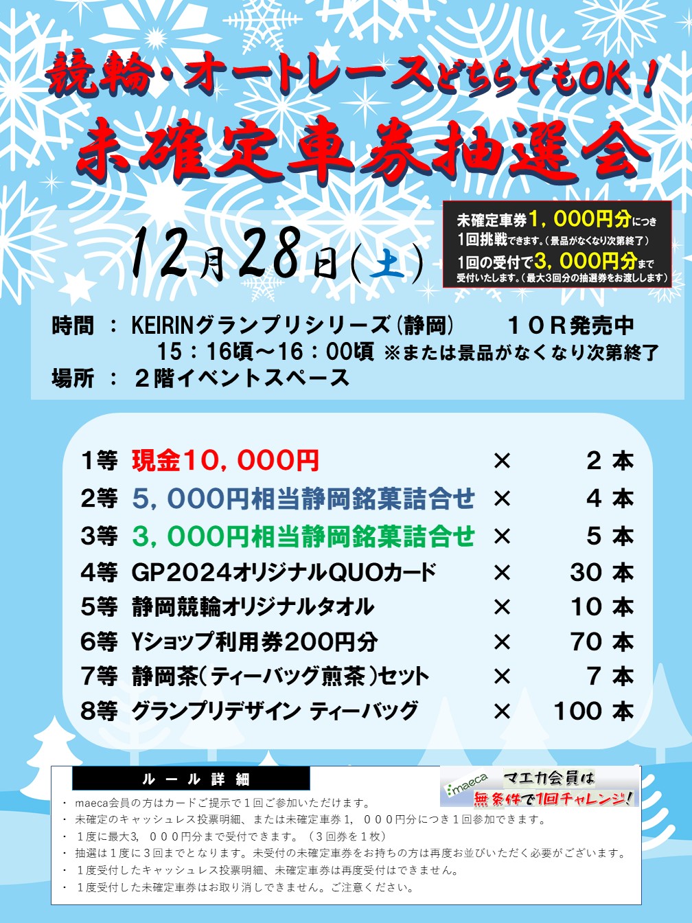 12月28日(土) 未確定車券抽選会を実施!