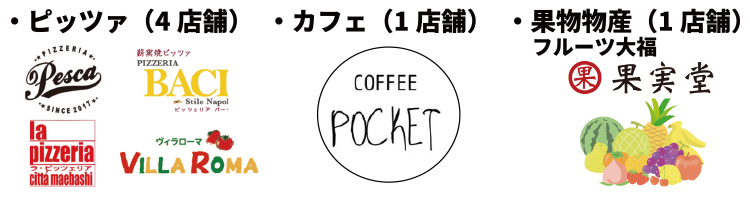 出店:PIZZERIA PESCA! 、PIZZERIA BACI、LA PIZZERIA、VILLA ROMA
