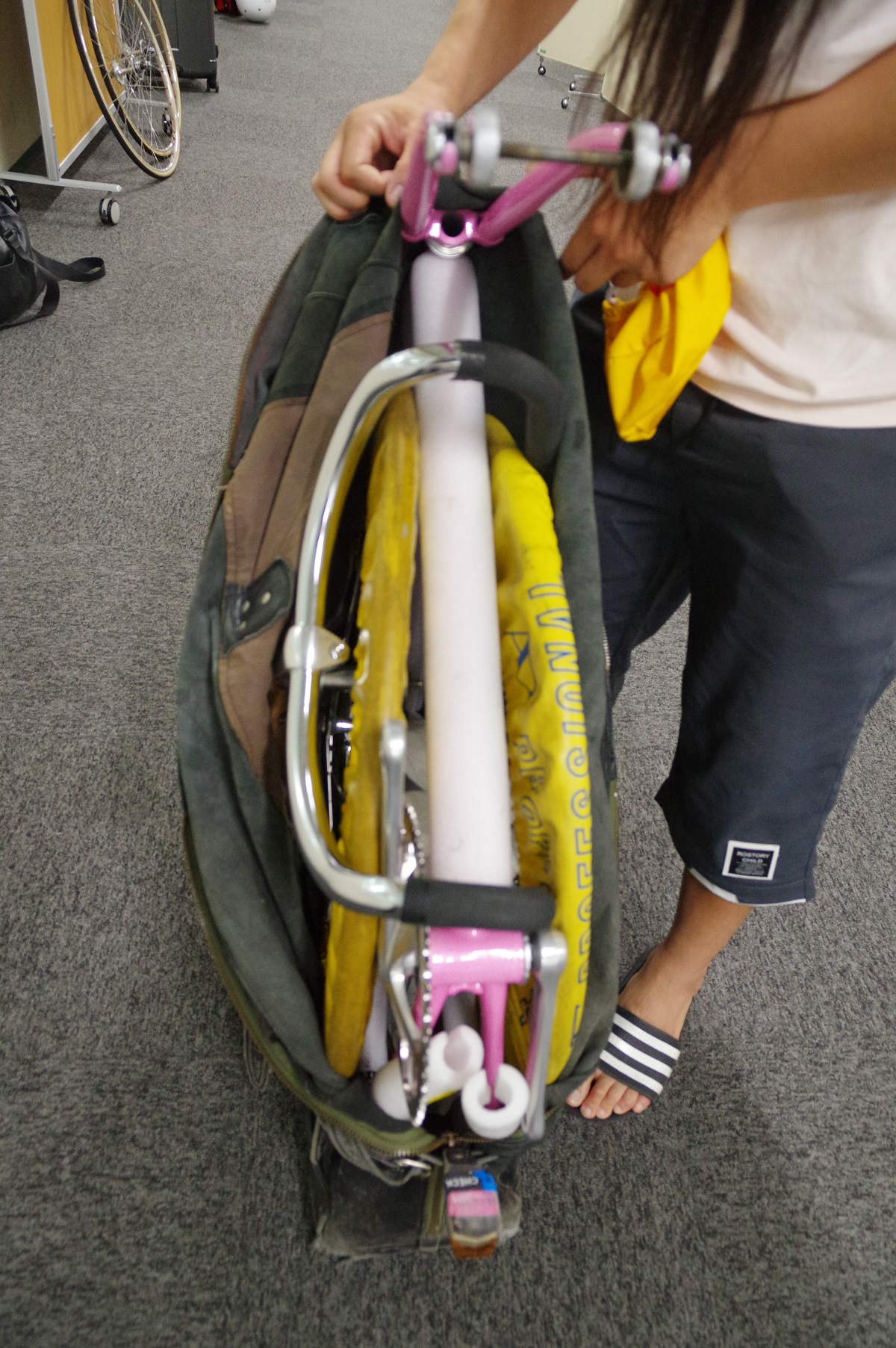いずれは、埼玉支部の若い選手にあげると思うのですが、長身選手が使うようなフレームサイズが大きい自転車だと入らないんですよね。