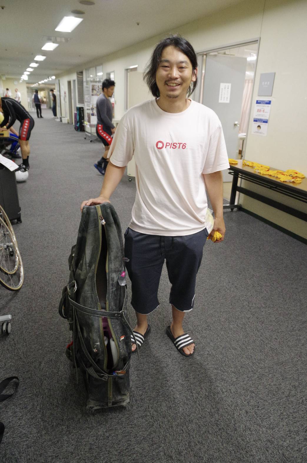 今日(8月17日)が前検だったので、インタビュー収録のためにいつものように検車場にいたのですが、そこにはかなり年季の入った輪行袋が。持ち主は埼玉の高橋昇平選手。話を聞いてみました。