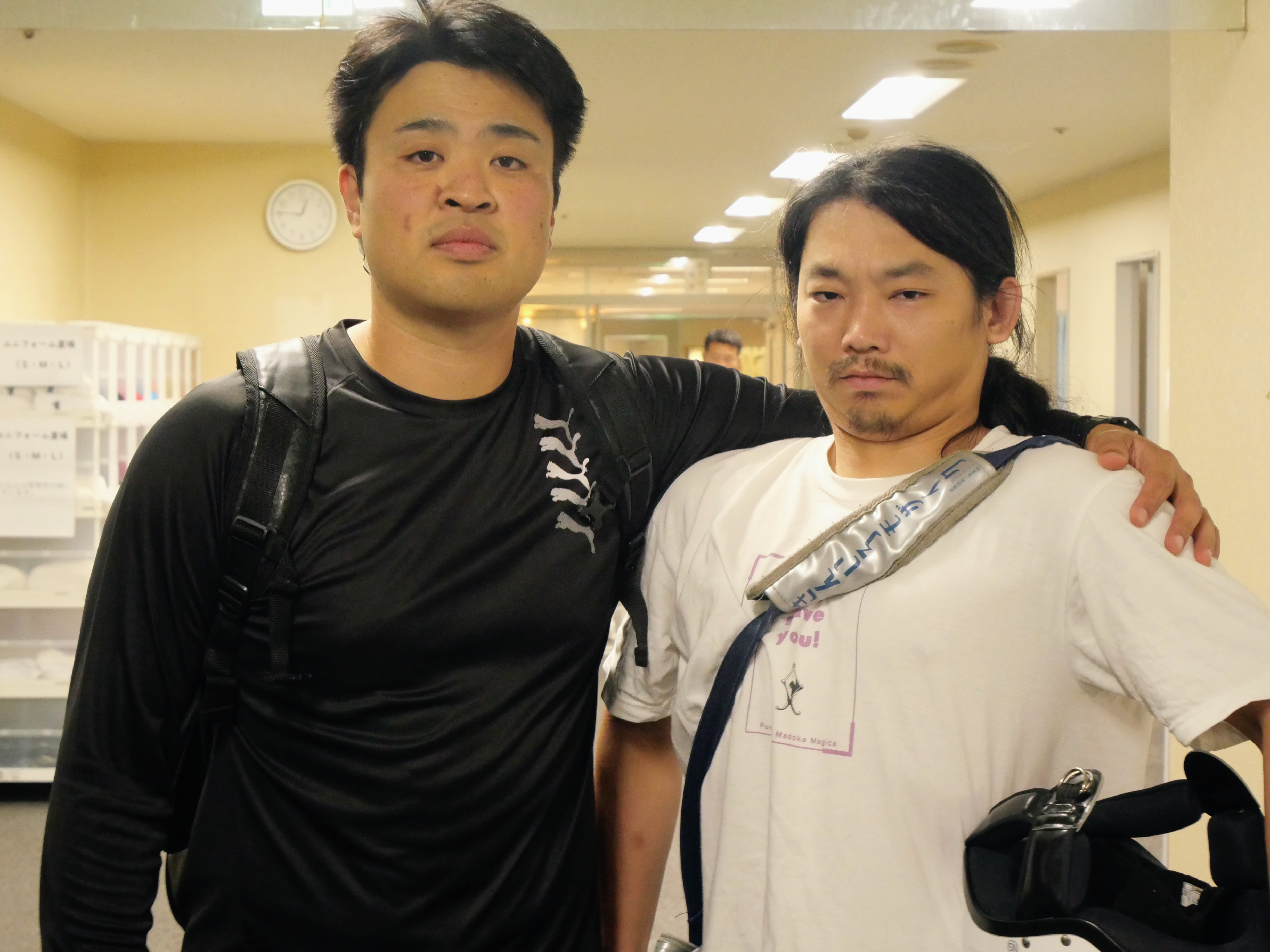 写真をご覧下さい。2人とも疲れた顔をしているように見えますが、やり取りは普通に元気でした。顔はわざとです(笑)。