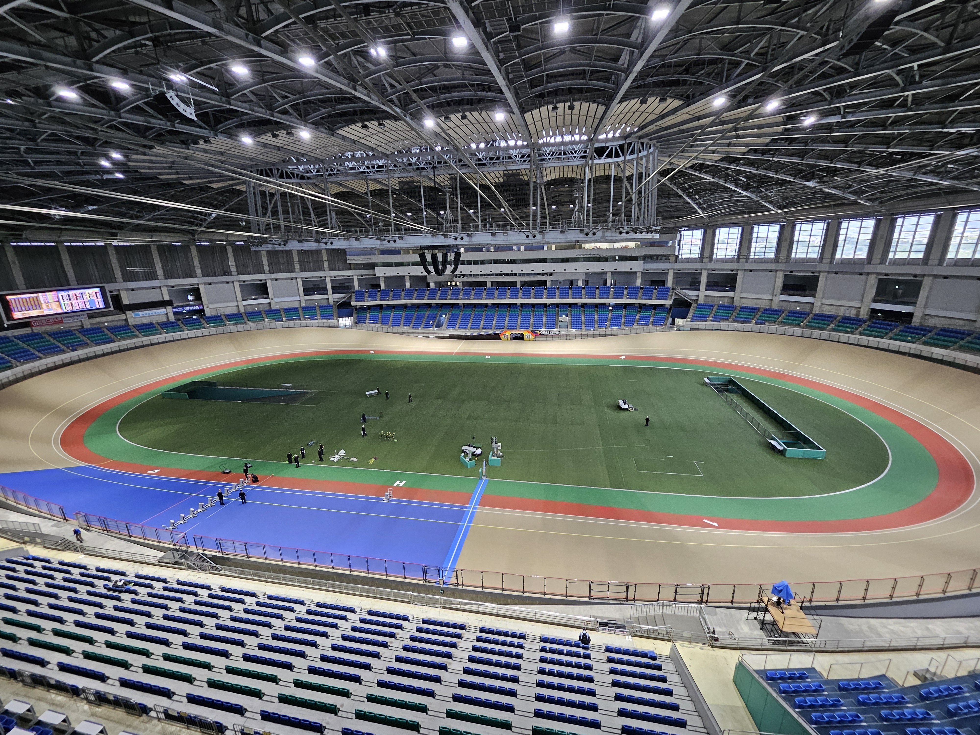 屋外の競輪場ですと、雨が降るので水はけを考えなくてはいけないのと、ウォークトップは自然にさらされて劣化するスピードが早いため、定期的にウォークトップの塗り替えや、バンクの舗装を掘り返す大規模な改修が必要になってきます。