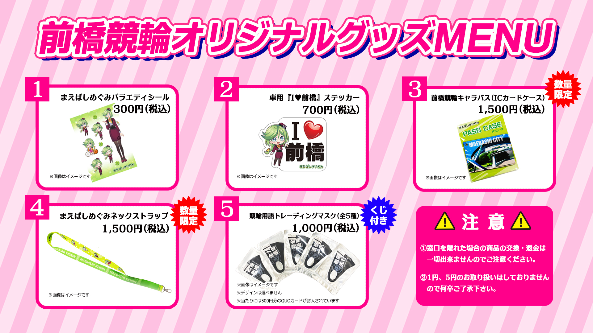 6月17日(木)より、前橋競輪場2F案内所において、オリジナルグッズを販売開始します。