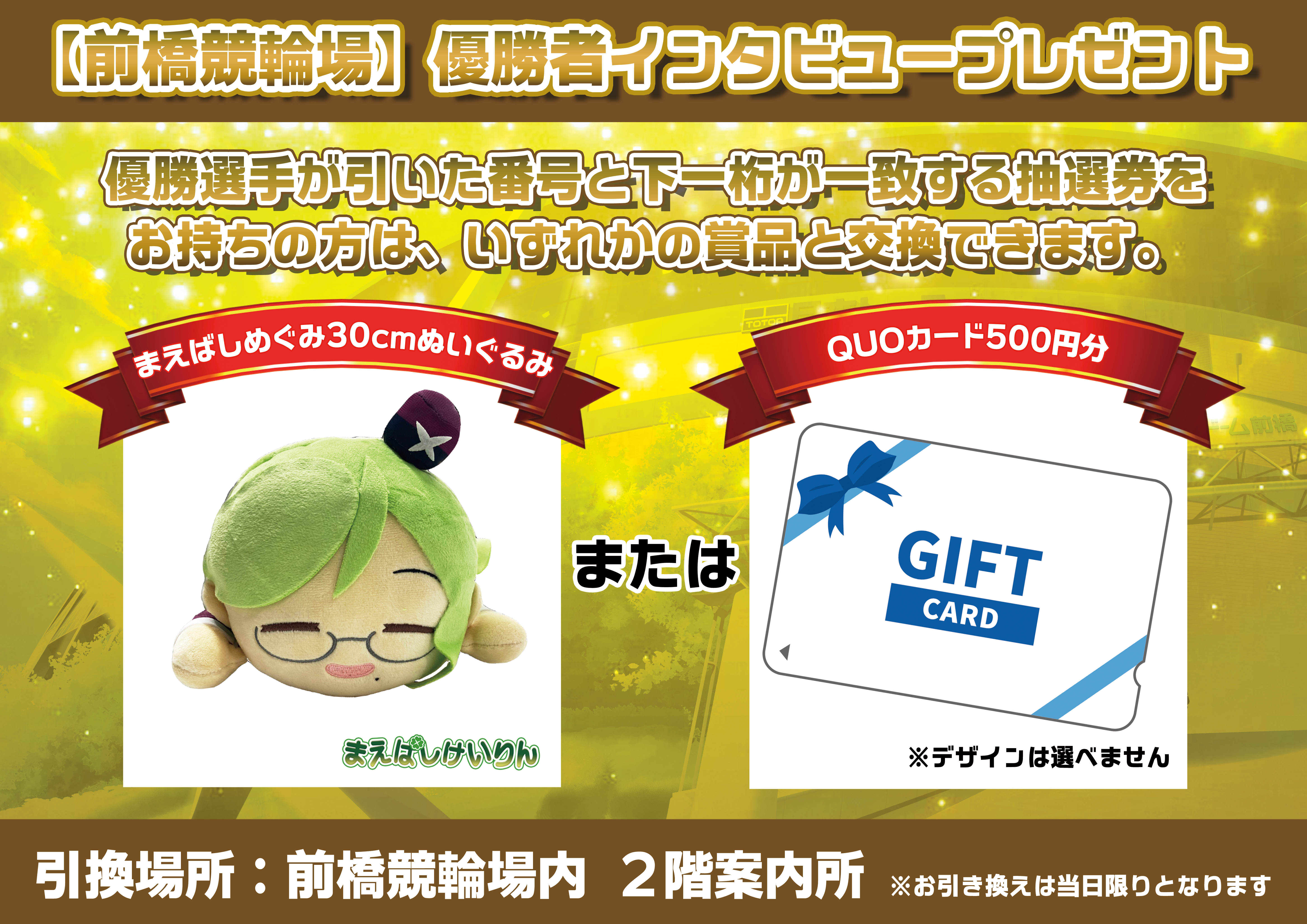 2023年11月9日(木)の前橋競輪本場開催 優勝者インタビューより、プレゼント抽選会を再開いたします!