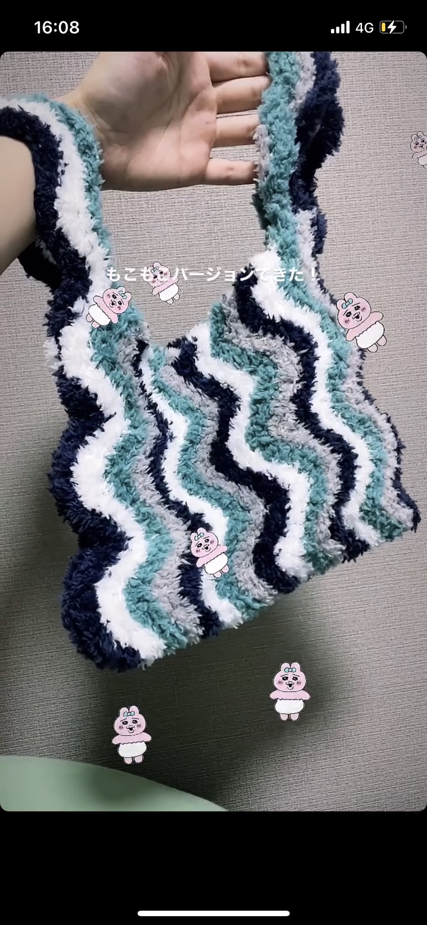 カバンを編むことが多いのですが、毛糸のカバンは物を入れたら伸びてしまうのであんまり使えません笑