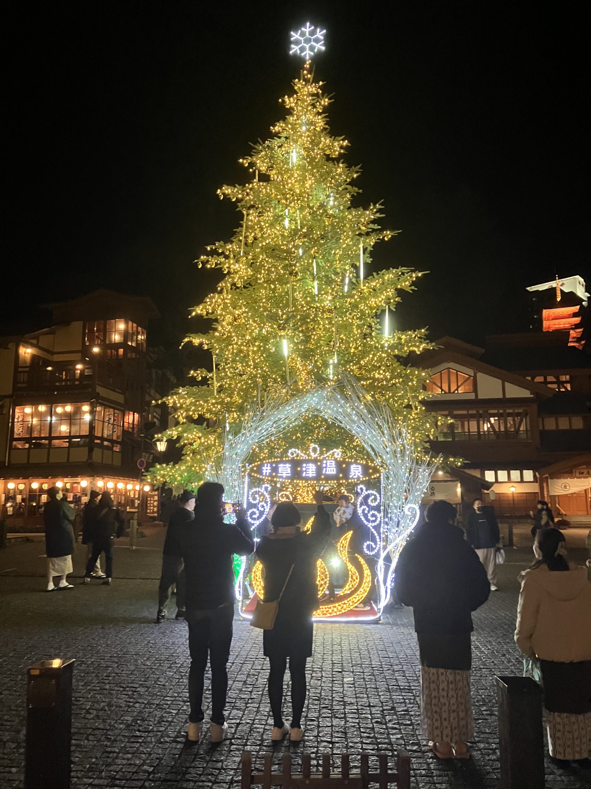 こないだ草津温泉に旅行に行ったとき、すでにクリスマスツリーのイルミネーションがはじまってました。