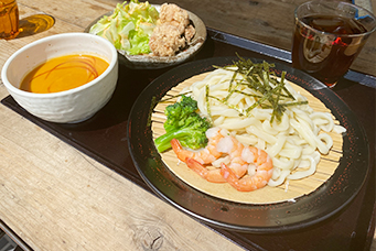 小林泰正選手(113期)オススメの、創作カレーうどん屋さんです。(写真は泰正選手オススメの“エビのチリクリームうどん※ざる”)