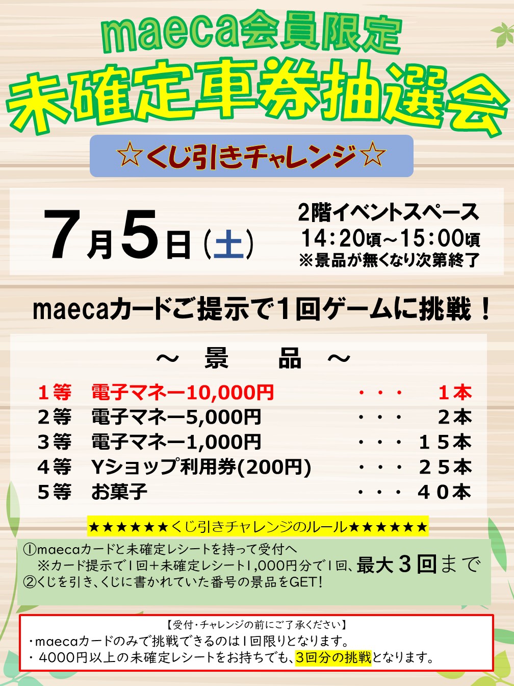 7月5日(土) maeca会員様限定!未確定車券抽選会を開催します!