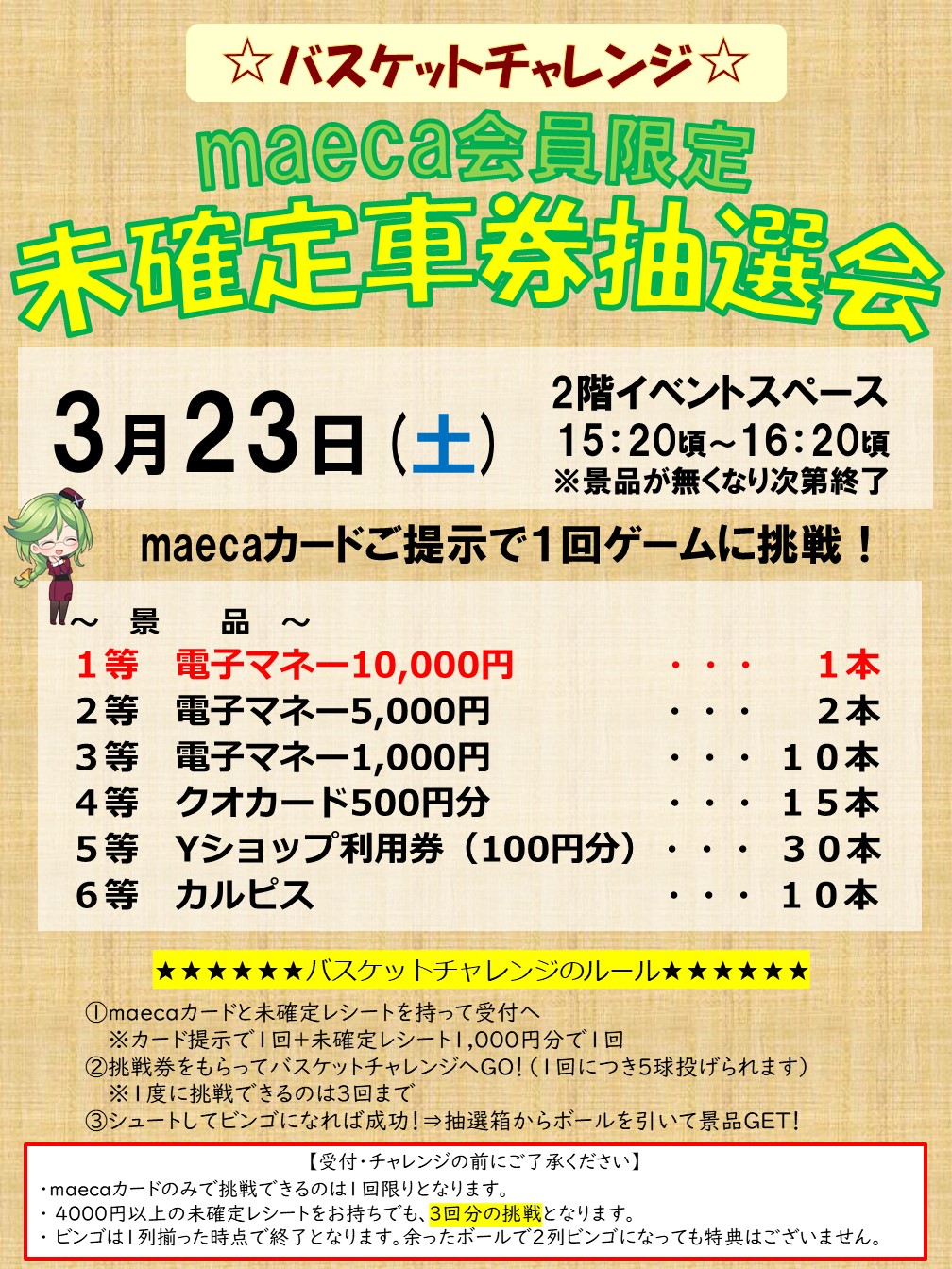 3月23日(土) maeca会員様限定!未確定車券抽選会を実施!