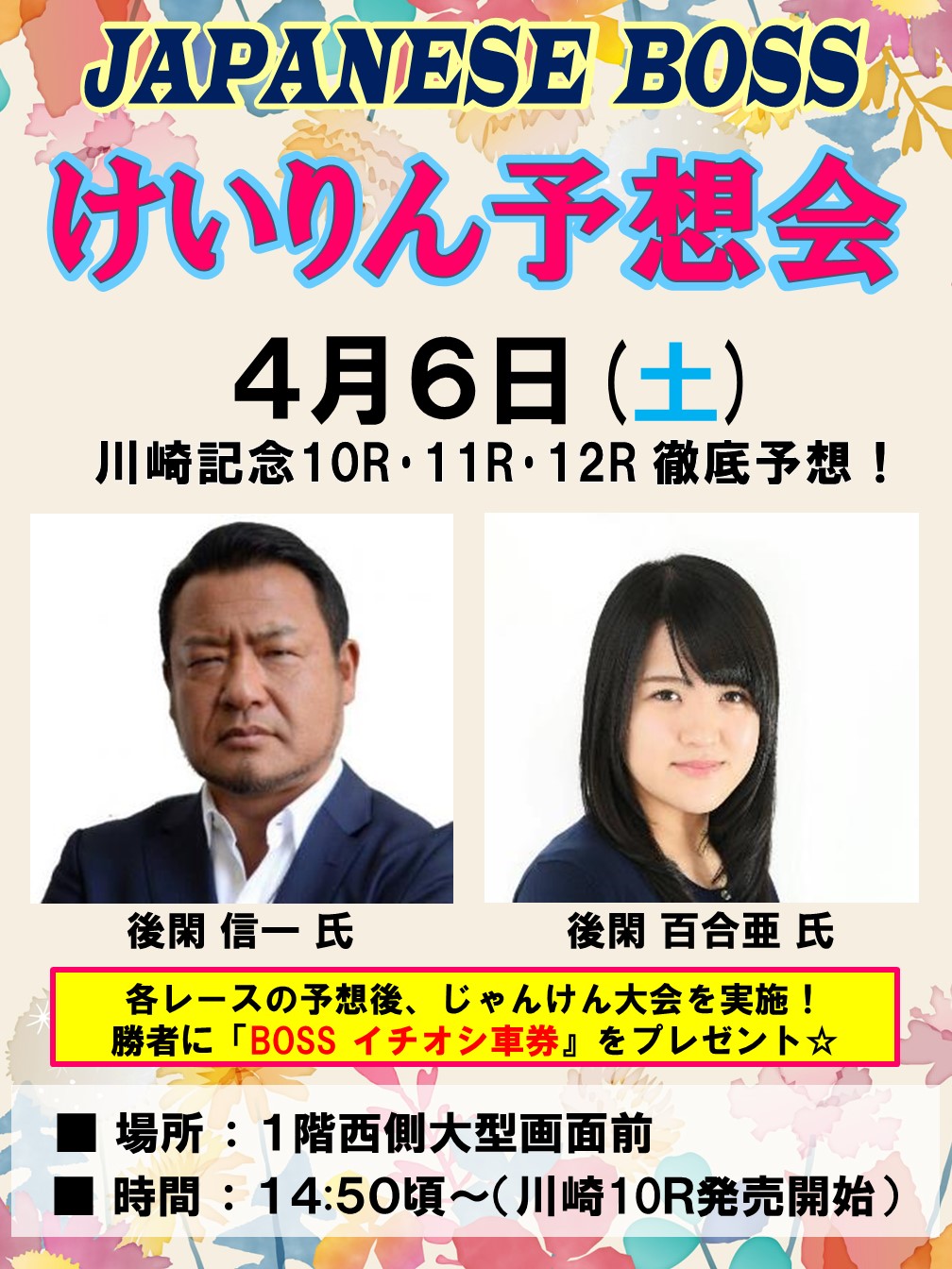 4月6日(土) けいりん予想会開催!後閑信一氏・後閑百合亜氏来場!