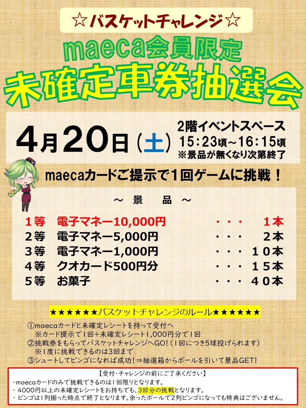 4月20日(土) maeca会員様限定!未確定車券抽選会を実施!