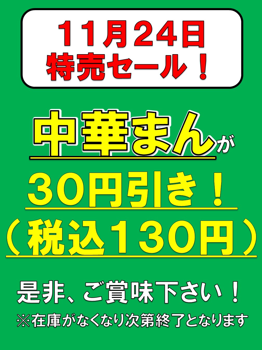 11月24日(日) 1階Yショップ特売セールのお知らせ