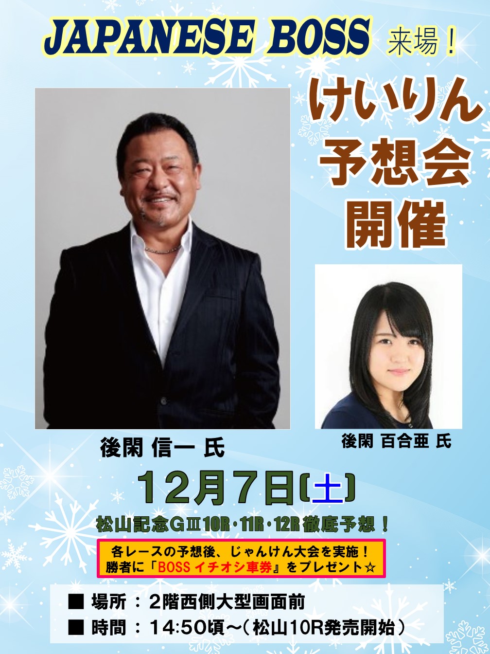 12月7日(土) けいりん予想会開催!後閑信一氏・後閑百合亜氏来場!